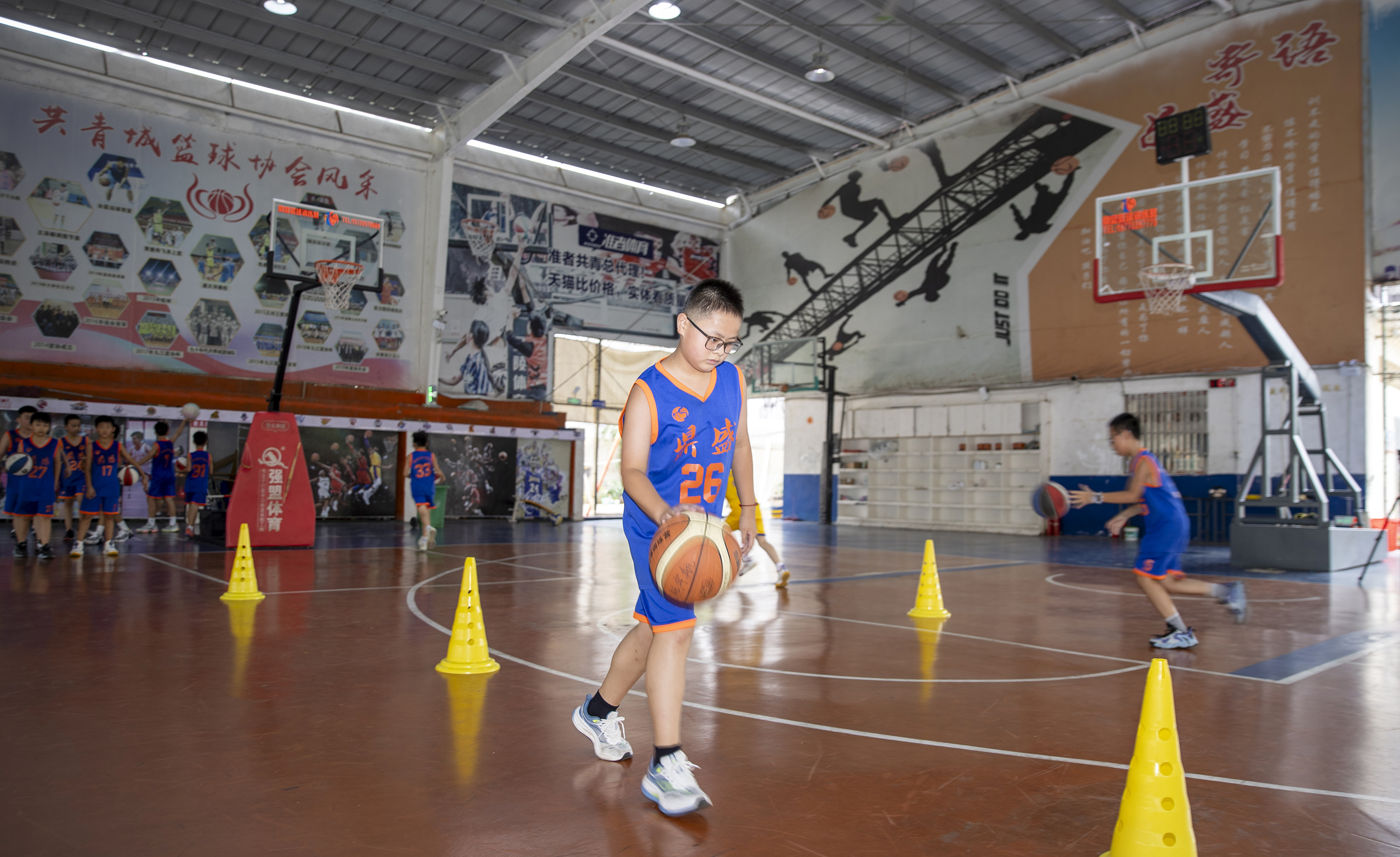 近日,在共青城市鼎盛篮球训练营,孩子们在教练的指导下,认真进行运球、投篮、对抗赛等各种训练,在运动中锻炼身体,感受篮球的魅力。暑假期间,滚滚热浪挡不住青少年们对运动的热情,越来越多的孩子选择走进篮球训练场,挥洒汗水、收获成长,用运动度过一个健康、快乐的暑假。(潘成 九江日报全媒记者 刘家 摄)
