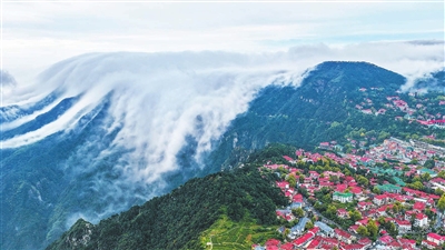 9月21日,庐山市庐山风景区云海翻涌,如瀑似浪的云雾在山峦间奔涌,与山间红顶建筑相映成趣。初秋以来,庐山云海景观频繁出现,成为秋季旅游亮点,吸引众多游客前来观赏这一壮美奇观。(韩俊烜 摄)