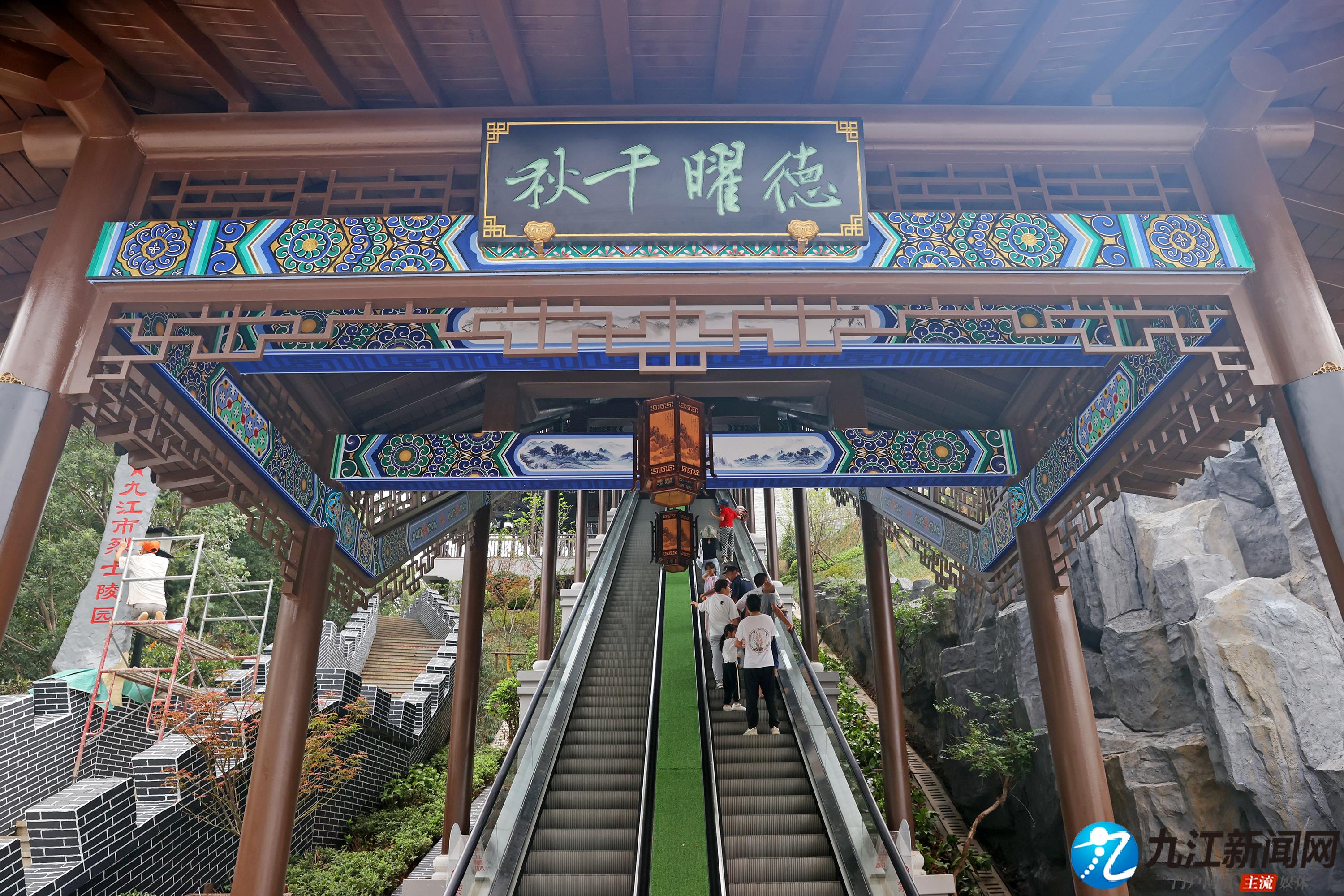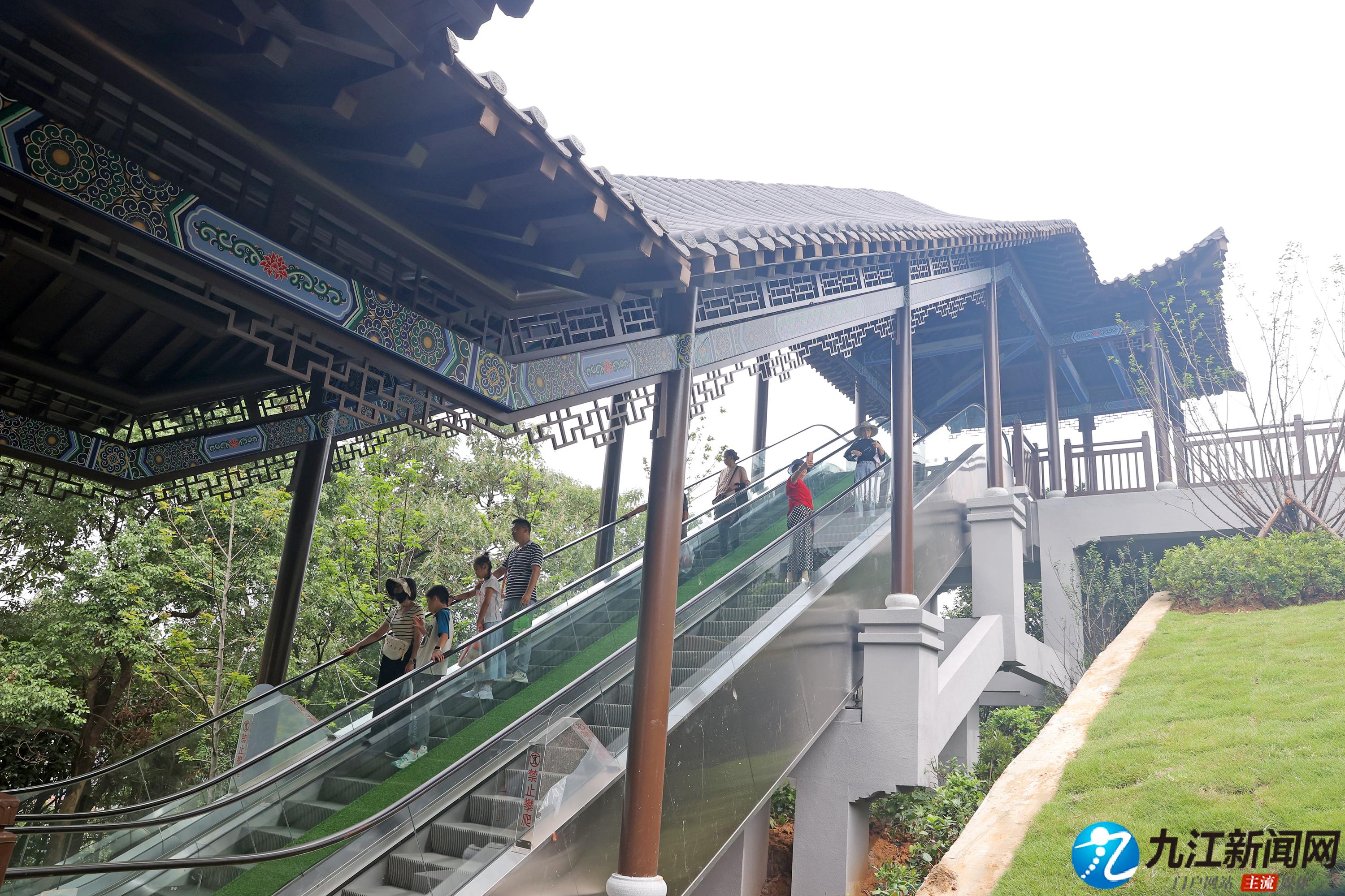 9月27日,位于濂溪区南山公园的德化楼处新增观光扶梯已建成完工并开放试运行,不少市民和游客一边乘坐扶梯一边拿出手机拍照。该扶梯垂直落差21米,设计上深度融合南山公园自然、文化元素,采用主体钢结构 仿古风格,造型与德化楼建筑风格形成美学呼应,兼具功能性与艺术性。(九江日报全媒记者 刘家 摄)
