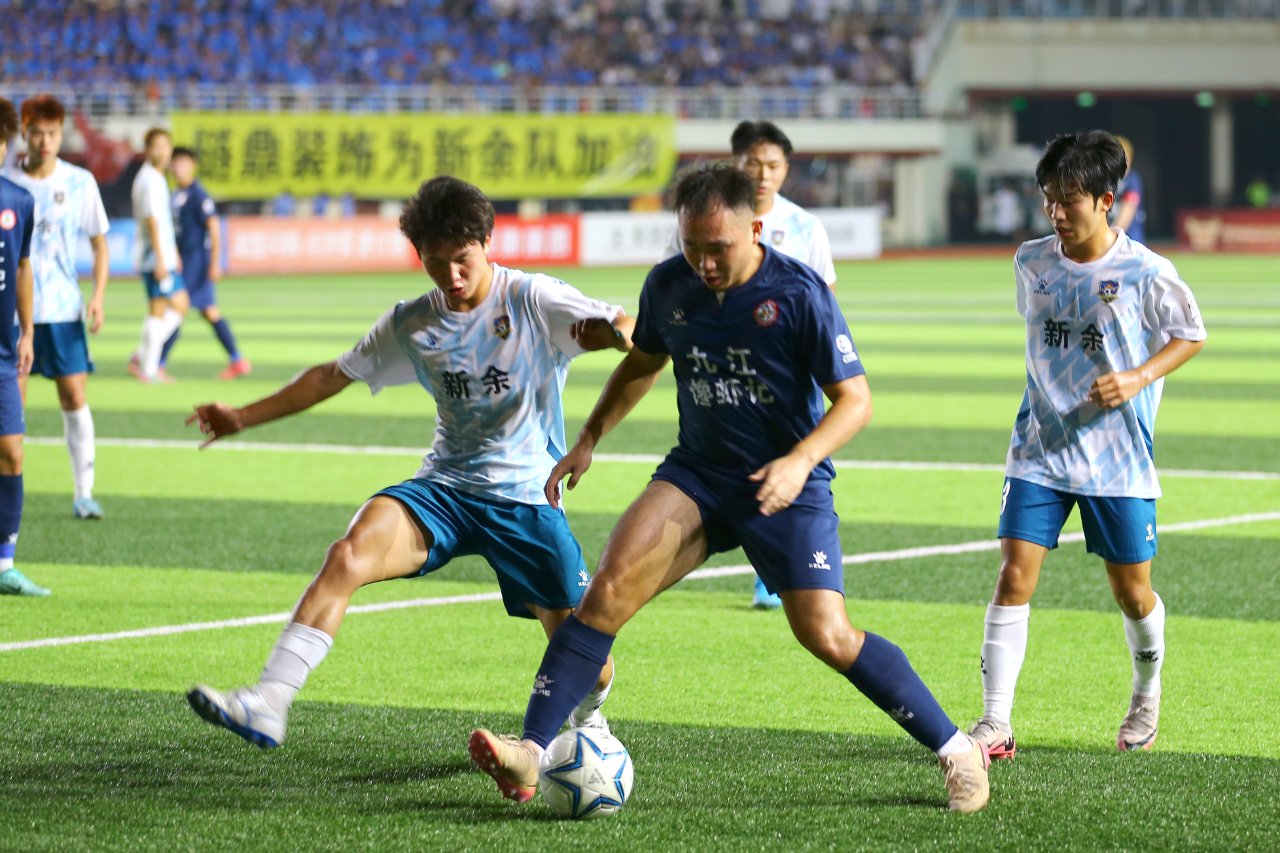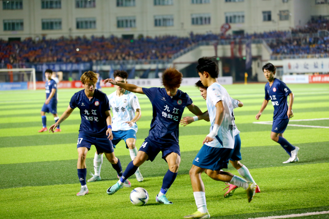 总比分暂时持平,九江队及时调整战术,在场上保持耐心,持续通过进攻寻找机会。下半场开场后,九江队不急不躁,一度主动收缩阵型,诱导新余队压上,伺机寻找反击机会。随着比赛进入胶着状态,双方拼抢愈发激烈,多次出现球员倒地的情况,比赛节奏被迫打断。